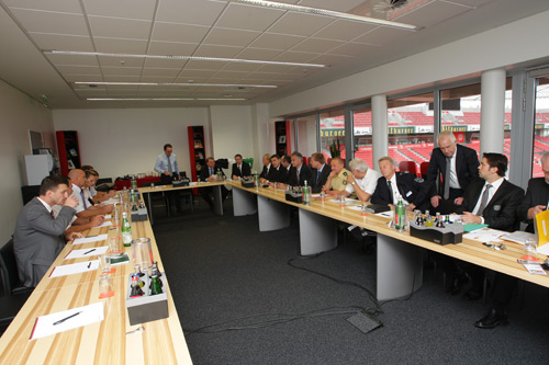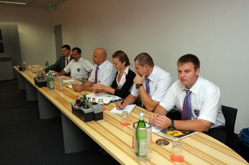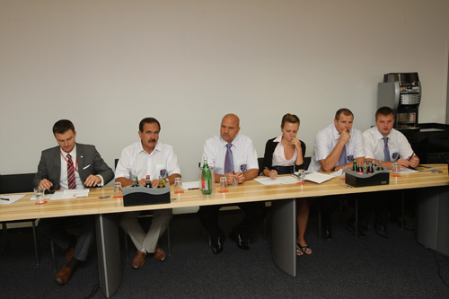 Сегодня в конференц-зале «БайАрены» прошло традиционное предматчевое совещание с участием делегата и инспектора УЕФА, судейской бригады, представителей нашей команды, а также всех вспомогательных служб. На совещании определены цвета формы обеих команд. «Таврия» будет играть в белой, а хозяева в традиционной черной форме.