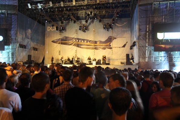 А вечером перед аэропортом всех ждал концерт. На проведение организаторы не поскупились, пригласив Океан Эльзи, Ночных снайперов и С.К.А.Й. Зрителей не распугал даже дождь, который время от времени принимался идти.