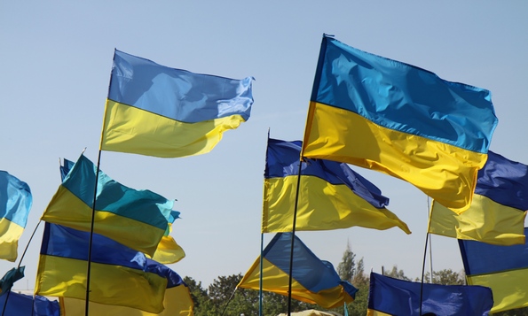 Первое, что бросалось в глаза перед новой постройкой - толпа людей с украинскими флагами, которые пришли поприветствовать президенты Украины. Невзирая на сильный ветер, люди мужественно ждали запоздавшего главу страны.