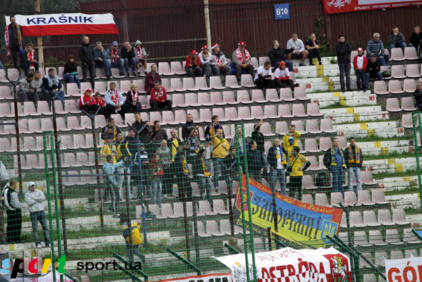 Что касается украинцев, то было две компании человек по десять на разных секторах, к середине второго тайма приехало около пятидесяти опоздавших, тогда уже поддержка стала лучше, но поляков перекричать все же не всегда удавалось.