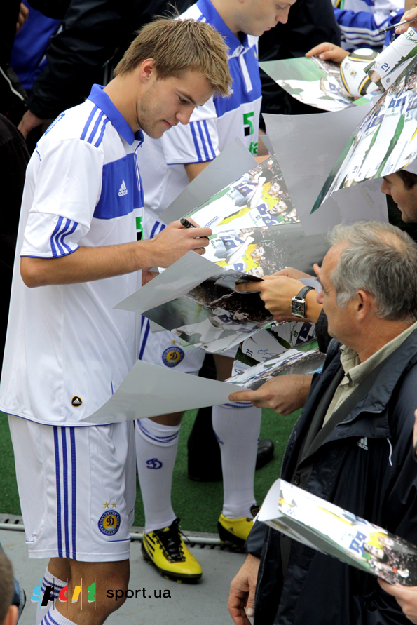 Сегодня на стадионе «Динамо имени Валерия Лобановского» прошла презентация новой экипировки столичного «Динамо». Практически весь основной состав команды прибыл на церемонию, оградив собравшихся болельщиков автографами и вниманием. Десятка счастливчиков, забившая голы с одиннадцатиметровой отметки Максиму Ковалю и Денису Бойко, получили свои призы в виде формы клуба.