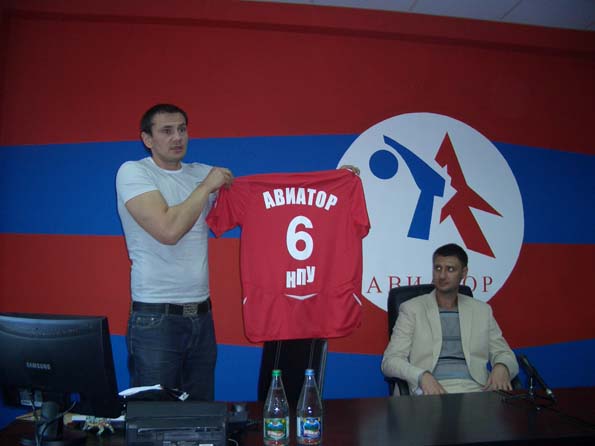 В офисе гандбольного клуба «Авиатор» (Киев) состоялась пресс-конференция с участием президента клуба Андрея Мельника и директора клуба Евгения Петрушевского, посвященная старту чемпионата Украины по гандболу среди команд Суперлиги, а также представили новую форму клуба.
