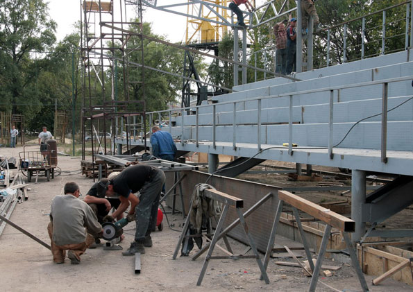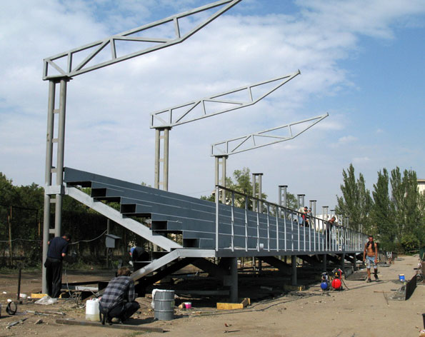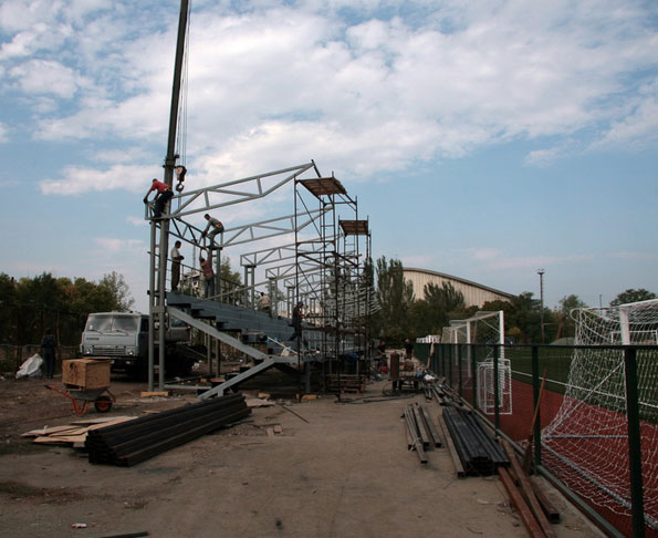После завершения строительства нового, искусственного поля ФК «Заря», активно ведется строительство трибуны возле нового поля. Работа идет целый день и в любую погоду. В данный момент идет установка металлических конструкций. По завершении строительства трибуны так же будут установлены табло и освещение. Таким образом, тренировочное поле команды будет соответствовать всем требованиям современного футбола.