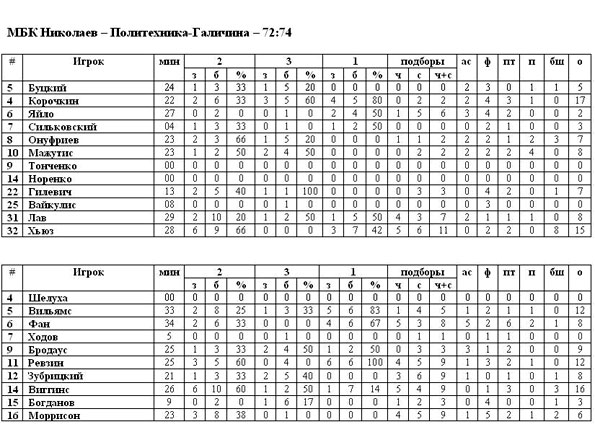 В целом матч получился очень интересным. Команды на сегодняшний день демонстрируют баскетбол приблизительно одинакового уровня, что делало результат непредсказуемым. Начало осталось за хозяевами паркета. Особенно активно действовал в стартовые минуты Андрей Корочкин, который прорывался под кольцо, оставляя позади защитников гостей. Немного освоившись на чужой площадке, баскетболисты «Политехники» перехватили инициативу в свои руки и вышли вперёд. На протяжении всего поединка подопечные Поляха держали соперников на расстоянии, это преимущество и сохранилось до финальной сирены. В составе победителей хочется отметить Ревзина, Виггинса и Вильямса. Что касается баскетболистов Николаева, то здесь отличился американец Хьюз, который наработал на дабл-дабл и добавил к ним 8 блокшотов.