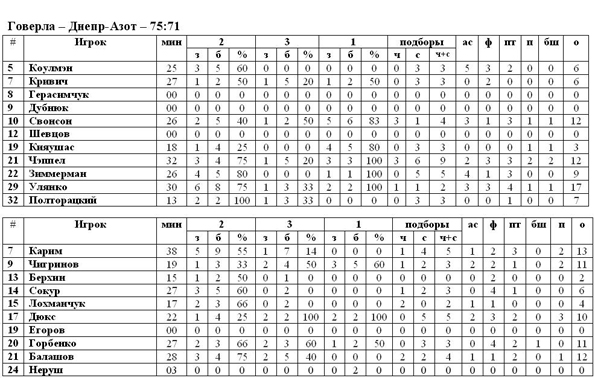 В рамках очередного тура Суперлиги в понедельник прошло три матча. Ивано-франковская «Говерла» на своём паркете переиграла «Днепр-Азот». Эта победа для подопечных Евгения Мурзина стала пятой подряд, что только укрепило их позицию на первой строчке турнирной таблицы. Ещё в одном матче днепропетровский «Днепр» на выезде в овертайме переиграл львовскую «Политехнику», а завершала игровой день пара «Будивельник» - «Ферро-ЗНТУ». Противостояние в Киеве было самым результативным, победу одержали хозяева паркета с 14-тиочковым преимуществом. Подробная статистика всех матчей приведена ниже.