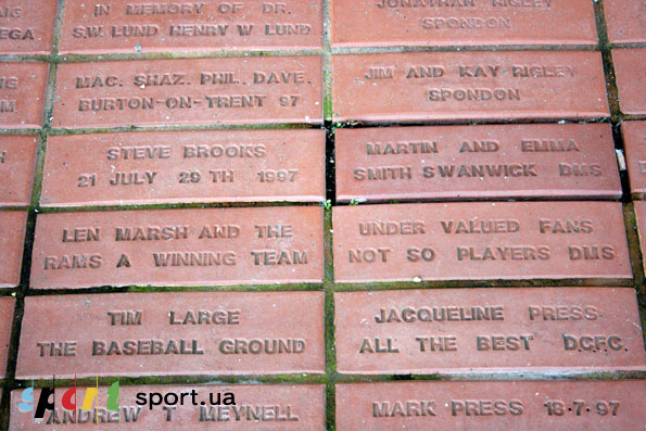 С тыльной стороны стадиона есть кирпичная аллейка. На каждом из кирпичиков выбито имя болельщика «Дерби Каунти». Поговаривают, что-то подобное хотят сделать и на «Донбасс-Арене»