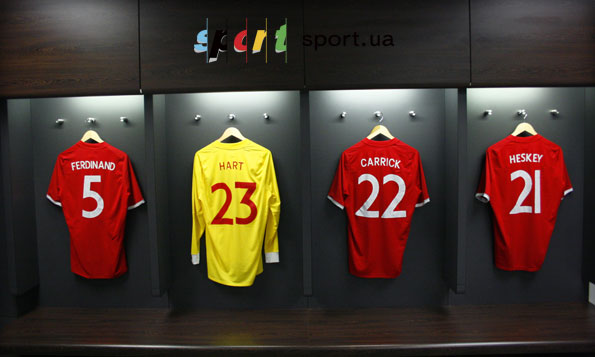 Раздевалка команды на «Уэмбли». Футболки английских «сборников».