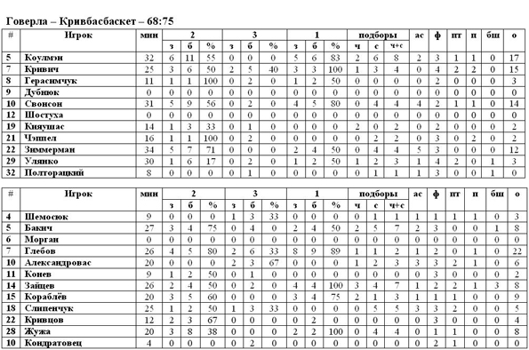 Ивано-франковская «Говерла» потерпела четвёртое поражение подряд. На этот раз «медведи» принимали на своём паркете «Кривбасбаскет», который стремился реабилитироваться за досадное поражение в прошлом туре от Николаева. Подопечные Звездана Митровича сумели переиграть своего противника под щитами, именно это и стало определяющим фактором в победе гостей, кроме этого блистательную результативность продемонстрировал Глебов, который 22 очками существенно пополнил копилку своей команды.