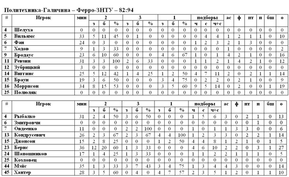 После затяжной серии, состоящей из четырёх неудач подряд, запорожский «Ферро-ЗНТУ» наконец-то сумел выиграть. Сегодня подопечные Кирилла Большакова на выезде переиграл «Политехнику-Галичину». Львовский клуб очень неуступчив на домашнем паркете, поэтому успех «ферросплавов» ценнее вдвойне. Как всегда наработал на дабл-дабл Бёрнс (27 очков + 10 подборов), неплохо также себя зарекомендовал новичок запорожцев Джонсон, который собрал 8 отскоков.
