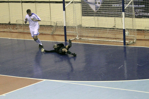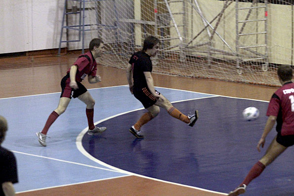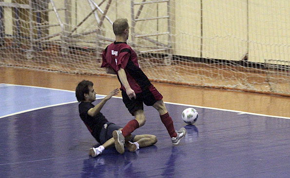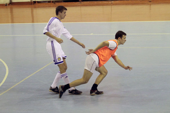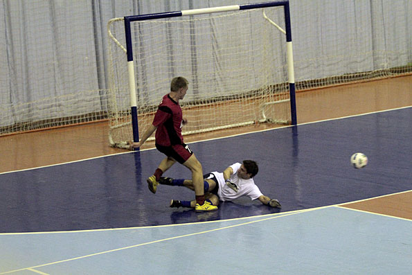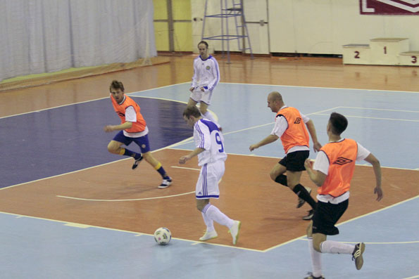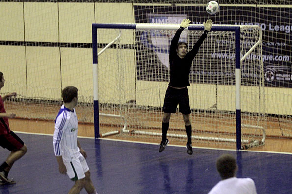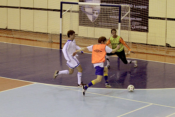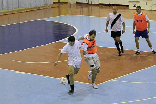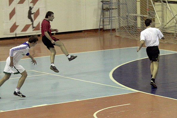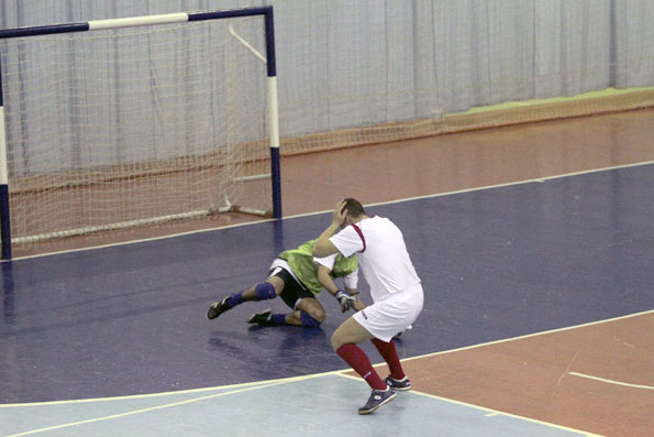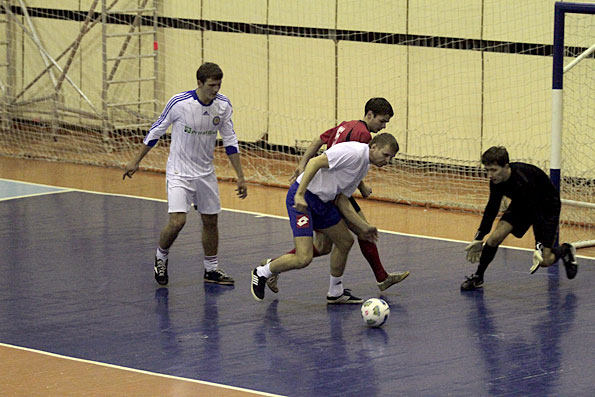 Сергей Дрыга (руководитель спортивной редакции Блика) почему-то бежит от ворот соперника :) За ним сосредоточенно наблюдает голкипер Sport.ua Михаил Шаповалов