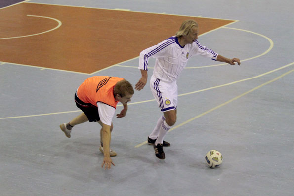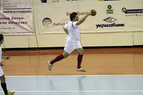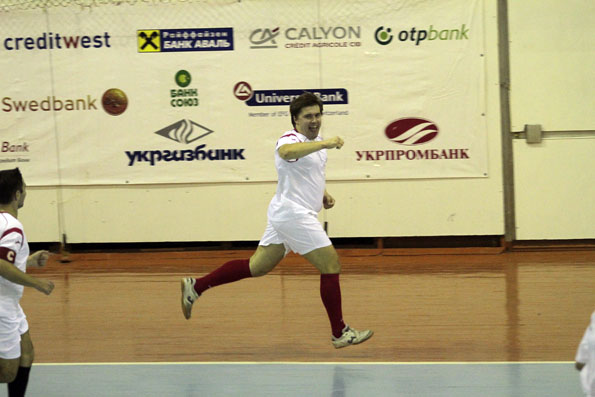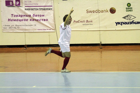 Через секунду Дмитрий Копий (Sport.ua) вколотит первый мяч Media Cup 2010!