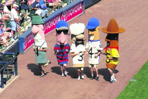 Талисманы бывают очень странные, например — колбаса! Это у американской бейсбольной команды «Милуоки Брюэрс». Фигурки символизирующие разные сорта колбасы, популяризирующие колбасную компанию Клемента, продукцией которой потчуют болельщиков на играх этой команды.
