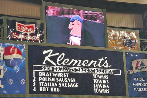 В начале 90-х на каждом домашнем матче «Милуоки Брюэрс» стали проводить забеги этих талисманов. Сначала в них принимали участие немецкая братвурст, польская келбаса и итальянская сальсичча. Скоро гонки колбасных талисманов стали очень популярными и к троице присоединились американский хот-дог и испанская чоризо. У каждой колбаски появился спонсор, они получили имена, а на их забеги стали принимать ставки. Сейчас в забегах колбасок Клемента выступают немецкая Бретт Вурст, польская Стош, итальянская Гвидо, американский Френки Фюртер и испанская Кинко.