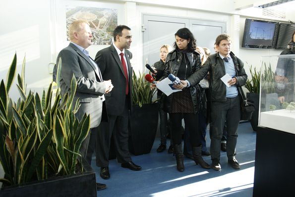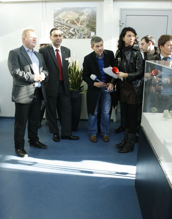 Первым делом организаторы экскурсии – представители местного оргкомитета турнира -- предоставили нам возможность пообщаться с директором Национального центра спорта (NCS) Польши Рафалом Каплером в офисе строительства.
