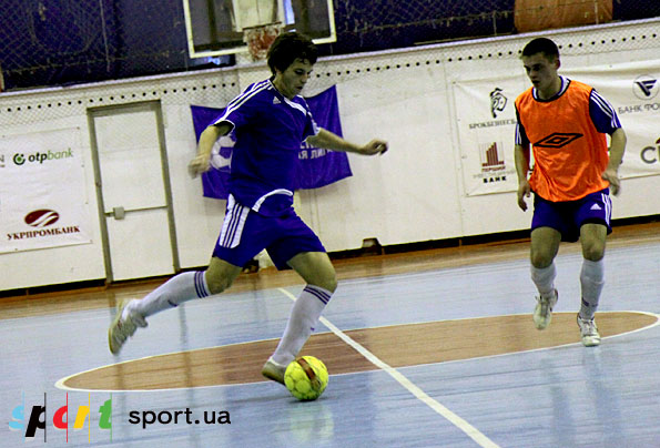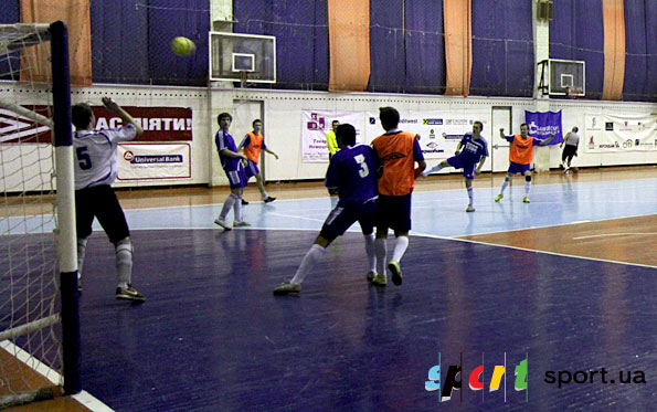А на 12-й минуте «Эксим» все же забил. Все решила позиционная ошибка. Алексей Сичкар занял неправильную позицию во время розыгрыша соперником аута, позволив таким образом пробить Дмитрию Бондарчуку. Далее нелепый рикошет и как следствие - гол. Через минуту «студенты» имели неплохую возможность отквитать один мяч: Алексей Сичкар великолепным пасом через всю площадку нашел Артема Гайдайчука, тому не хватило считанных сантиметров дотянуться и замкнуть передачу. На 19-й минуте Артем все же добился своего и мяч забил. Да еще как. Евгений Смирнов нашел на противоположном фланге Артема, отдав ему хоть и не удобную, но точную передачу. Артем сблизился с воротами, пробил в ближнюю девятку, и мяч эстетически от перекладины залетел в сетку ворот – 1:1. И тут-то настал черед Виталия Олищука, без преувеличения лучшего «ударника» в составе «Эксима». Уже не раз Виталий поражал ворота невероятными ударами. И в этот раз Виталий отличился. На 20-й минуте «банкиры» заработали право на пробивание штрафного прямо по центру метров с 10 – чем не убойная позиция для Виталия. Прямым ударом он отправил мяч в сетку не оставив никаких шансов киперу «студентов».