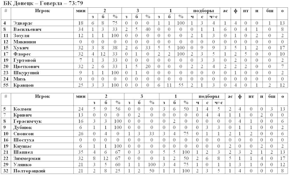 Уже в ближайшее время в верхушке турнирной таблицы Суперлиги могут произойти изменения. Баскетбольный клуб из Донецка сегодня уступил «Говерле» и тем самым дал шанс «Будивельнику» подняться на первую строку, которым «гладиаторы» смогут воспользоваться уже в следующем туре, одержав победу. Встреча «тигров» и «медведей», как и предполагалось, прошла в упорной борьбе, лидер по ходу матча менялся несколько раз, победный спурт «Говерла» совершила за две минуты до финальной сирены. За это время подопечные Мурзина вышли вперёд на шесть очков, которые в итоге и оказались победными.