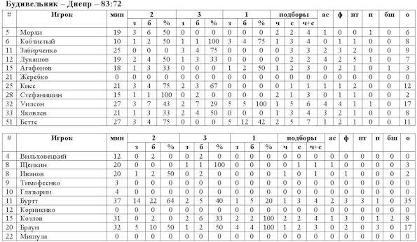 В субботу в рамках Суперлиги прошло три матча. В одном из противостояний киевский «Будивельник» принимал на своём паркете «Днепр». До этого матча команда Дениса Журавлёва имела успешную серию, состоящую из пяти подряд побед. Несмотря на это, столичная команда доказала, что не зря на сегодняшний день занимает первое место в турнирной таблице и по праву может считаться фаворитом в каждом противостоянии.