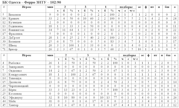 Баскетбольному клубу из Одессы сегодня удалось перервать затянувшуюся чёрную полосу. Именно в субботу Олег Юшкин сумел одержать первую победу в роли наставника «акул». Одесситы принимали на своём паркете запорожский «Ферро-ЗНТУ», который в этом чемпионате выступает крайне нестабильно. Первая четверть началась с тотального превосходства хозяев паркета практически в каждом игровом компоненте. Подопечные Юшкина действовали очень уверенно в атаке и дисциплинированно в защите. Высокую эффективность сумел продемонстрировать Ростислав Кривич, на счету которого 24 очка и пять подборов. К результативной игре украинца, американец Вашингтон добавил свои 22 пункта и также собрал пять отскоков. Преимущество одесситов на паркете вылилось в итоговый отрыв в 12 очков.