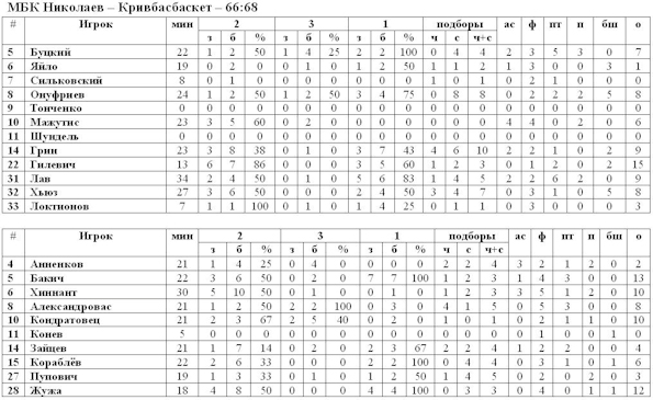 Завершался игровой день матчем в Николаеве, где муниципальный клуб принимал «Кривбасбаскет». В первом круге, соперники продемонстрировали очень равный баскетбол, тогда победу в овер-тайме сумели одержать николаевцы, поэтому сегодня ожидался настоящий реванш. Криворожцы в первые минуты сделали уверенный рывок 0:7 и вынудили наставника «корабелов» взять тайм-аут. Валентин Берестнев внёс несколько коррективов в пятёрку, которая находилась на площадке, а также в защитную схему, применив уже ставший традиционный для Николаева активный прессинг. Это принесло плоды, хозяева быстро догнали соперника в счёте и под занавес первой четверти сумели выйти вперёд. Вторая десятиминутка выдалась очень неоднозначной. С одной стороны, «судостроители» наращивали обороты и уверенно уходили в отрыв, но с другой стороны бригада судей, обслуживающая этот матч, допустила несколько явных ошибок и не дала хозяевам паркета закончить вторую четверть с комфортным отрывом. Следует отметить, что судейство сегодня в Николаеве было несколько странным, но не будем разбирать каждый из моментов детально, определяя правильность принятия решения, оставим это более компетентным органам. Вторая половина встречи была достаточно «валидольной» как для наставников обеих команд, так и для зрителей, которые собрались в этот вечер поддержать любимую команду. Основные события припали на заключительные минуты последней четверти. До последних секунд не было ясно, кто выйдет победителем из этого противостояния. Команды отвечали поочерёдно друг другу ошибками и результативными атаками. За семь секунд до конца счёт был равный, но успешно разыгранная комбинация в исполнении «Кривабасбаскета» и точный бросок Бакича, позволила команде Митровича вырвать победу в СК «Надежда».