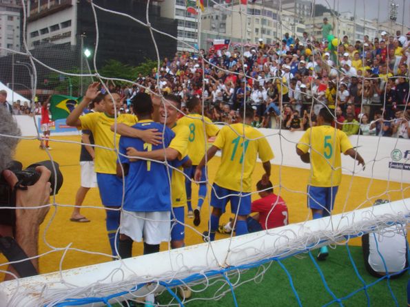 Вот и оно! Мы, наконец-то, увидели, что такое настоящий ФУТВОЛЕЙ! Все, что происходило на Копакабане, никак не могло соответствовать тому, что предстало нашему взору. Игроки демонстрировали невиданные нам ранее приемы. Пас грудью на пять метров вверх казался чем-то совершенно нереальным. Все то, чему нас обучал Проффесоре Роберто мы видели в реальном и идеальном исполнении. Особенный восторг вызывали удары, производимые ногой в немыслимом прыжке над сеткой. Чемпионат Бразилии закончился. Победителям вручили награды.