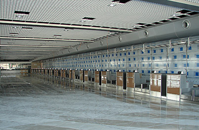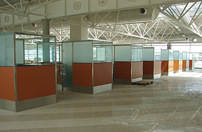 Ранее пассажирам. прошедшим контроль. приходилось ютиться на небольшой площади «под куполом». До конца 2007 года планировалась увеличить длину галереи на всю длину терминала B и увеличить число телетрапов с 2 до 3, однако все работы были заморожены до 2009 года.