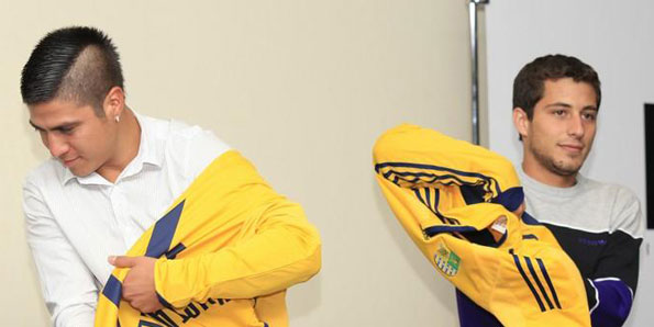 Евгений Красников: Я хотел бы поздравить всех нас - футбольный клуб вчера сделал рекордное приобретение. Мы купили, я надеюсь, двоих самых сильных, молодых и перспективных аргентинцев. За них была большая борьба с очень серьезными европейскими клубами. Но нам удалось победить, и сейчас мы с Сергеем Викторовичем хотим вручить ребятам футболки. Джонатан и Себастьян подписали контракты на пять лет.