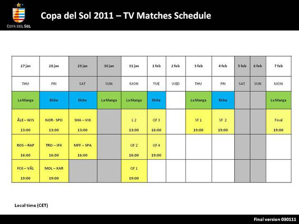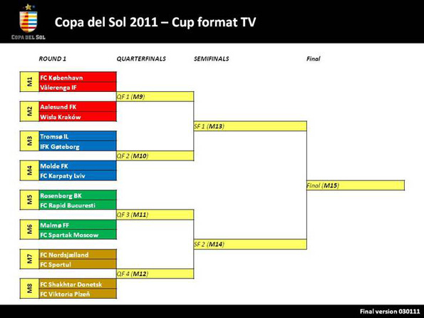 Сразу после Эмиратов «Шахтер» отправится в Испанию, где примет участие в турнире клубов из Восточной Европы и Скандинавии – «Копа дел Сол». По регламенту участники делятся на 4 группы, где каждый матч играется по правилам плей-офф с дальнейшим прохождением победителей в следующие стадии. Таким образом, каждая команда гарантированно проводит минимум три матча.