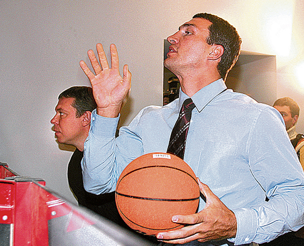 Со своим ростом Кличко был бы хорош в баскетболе. На матче «Лейкерс» его видели, на открытии «Арены» в Киеве он играл на баскетбольном автомате с самим олимпийским чемпионом Волковым. Но в большой игре Вова замечен не был. А вот в футбол Владимир играл в команде Андрея Шевченко — против звезд итальянской эстрады. Вова стоял в воротах и пропустил четыре из шести мячей (5:6).