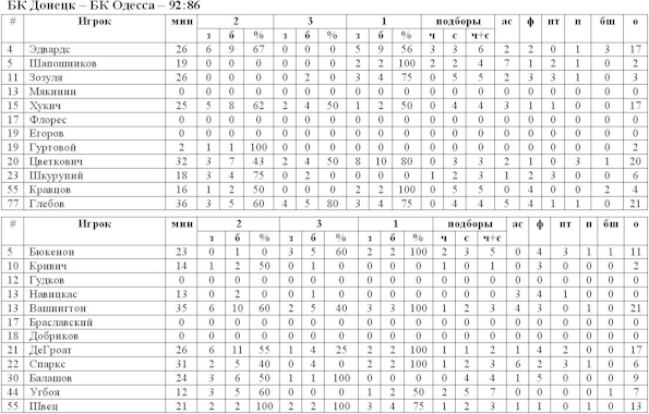 Донецкий баскетбольный клуб сегодня на домашнем паркете переиграл БК Одессу. «Акулы» за последнее время существенно усилились новыми игроками, поэтому на обновлённый состав подопечных Юшкина в противостоянии с лидером, посмотреть было довольно любопытно. Стартовали более удачно номинальные хозяева паркета, поочерёдно Шкурупий, Цветкович и Глебов результативно заканчивали атаки своей команды и уже в середине первой четверти «тигры» имели преимущество в 10 баллов. Эджике Угбоя принялся ликвидировать эту разницу, атакуя из трёхсекундной зоны. На первый короткий перерыв команды ушли со счётом 24:17. Во второй четверти игра заметно выровнялась, одесситам периодически удавалось подбираться к хозяевам довольно близко, но команда Обрадовича сдавать лидерские позиции не собиралась. В таком ключе встреча проходила до конца игрового времени, стало ясно, что БК Донецк не упустит своего, когда в середине заключительной четверти разница в счёте составила 15 очков. До финальной сирены гостям удалось немного сократить отставание, но победа всё же за «тиграми». Благодаря этому успеху БК Донецк поднялся на первую строчку, останутся ли там подопечные Обрадовича станет ясно завтра, когда свой поединок проведёт главный конкурент – «Будивельник».