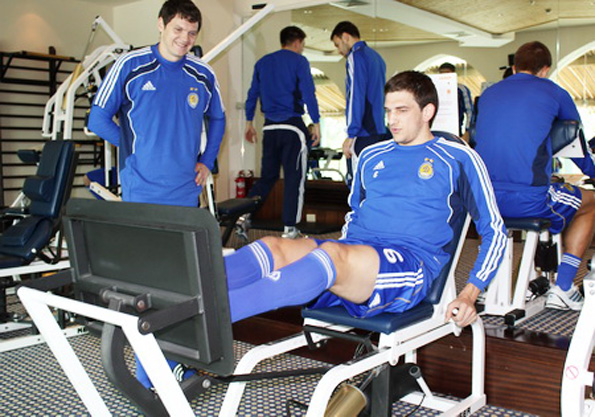 Распорядок дня «Динамо» – довольно-таки насыщенный. Подъем и медобследование – уже в 8.00. Спустя полчаса – завтрак и немного свободного времени до начала работы в тренажерном зале (9.45). В 10.30 команда выезжает на тренировку, которая в среднем продолжается около часа. В 13.00 – обед и немного сна. А уже в 16.30 – выезд на вечернюю тренировку. Около трети занятий – это монотонная беговая работа и аэробика под руководством вернувшегося в «Динамо» итальянского тренера по физподготовке Винченцо Пинколини. Впрочем, по словам игроков, «черновой работой» они не перегружены. «Настроение отличное, тренировки проходят интересно и весело – много игровых упражнений», – говорит Шевченко.