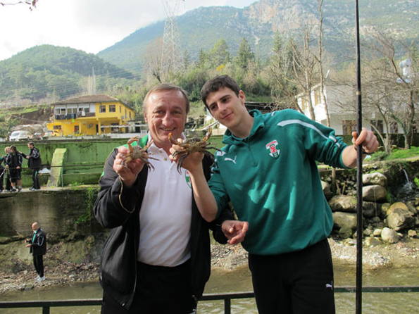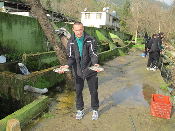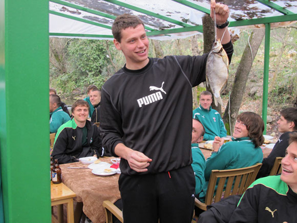 Тим паче, що за півгодини їзди від готелю серед гір розташувався спеціальний «Ботанік-парк», де все для цього є. Кожному, хто сюди приїжджає видають вудочку і пропонують ловити форель у місцевій водоймі. Для цього рибу розводять у спеціальних резервуарах, а потім випускають. Цю ідею в команді сприйняли «на ура». Адже в колективі майже всі виявилися заядлими рибаками і не проти були змінити бутси на вудилища.