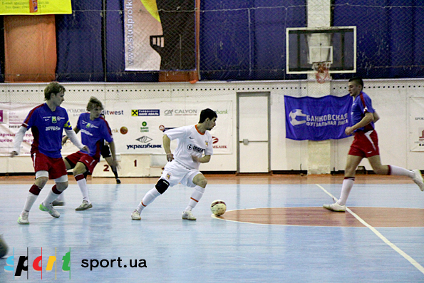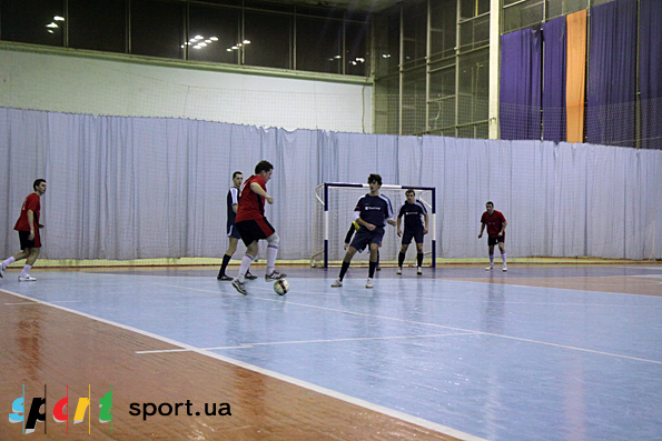«Красно-чёрные» вновь, как и в предыдущих играх, имели кадровые проблемы. и это – при том, что вернулись лидеры команды (Копий и Светличный), в кои-то веки в составе появились Ницак и Дудка… Но основной проблемой команды на этот раз была вратарская, поскольку в составе не оказалось человека, который владел бы навыками игры в воротах. В результате в «рамке» игру начал Курдас. Один раз Курдиньо вступил в игру в качестве вратаря, но даже для него тот нанесённый удар не таил особой угрозы. Но зато в атаке представители информационного агентства «Спорт Украины» начали практически с первых минут преуспевать, создавая опасность у ворот Гуця. Причём стоит отметить, что и тут Курдас успевал помочь своим партнёрам. Вышло так, что уже начиная с дебюта встречи футзалисты в красно-чёрной форме начали играть с «летающим вратарём». На моей памяти только одна команда начинала игру именно таким образом – донецкий «САПАР», который канул в Лету. У донецкой команды это была довольно-таки успешная тактика: Удовиченко (нынешний вратарь «ЛТК», кстати) подключался пятым полевым, «САПАР» забивал, и после этого сводил игру в нужное ему русло. Вот только у «Спорта Украины» это не получилось. После этого в воротах «Sport.ua» произошла смена вратаря, которая, в принципе, и определила дальнейший ход игры: в ворота встал Дудка, а Курдас стал исполнять привычные для себя функции полевого игрока. И вскоре «симкорповцы» решили проверить, насколько Дудка соответствует такому понятию, как «страж ворот». Проверили – сначала на 6-й минуте после неразберихи в своей же штрафной журналисты привезли в свои ворота первый гол (отличился омличенко), а на 12-й минуте счёт стал 2:0 в пользу их соперников. Это Петрик элегантно, пяткой, завершил комбинацию одноклубников. Нащупав слабое место у соперника, «симкорповцы» принялись пробивать по воротам так, чтобы у Дудки при этом возникали проблемы. иногда это выходило удачно, но больше голов в воротах «Спорта Украины» в первом тайме не побывало. Зато побывал один забитый мяч в воротах как раз команды в тёмно-синих цветах. А началось всё с того, что Курдас простреливал в район «пятачка», где оказался Веркулевский. Но его удар Гуць парировал прямо на ногу Копию, который и добил мяч в сетку, тем самым подтвердив реноме бомбардира. Но это, как оказалось, было единственное, что Гуць позволил сделать Копию и компании. Дальше он с честью и достоинством отражал все попытки Копия, Курдаса сотоварищи забить, порой вытягивая невероятные мячи. Вот с кого надо брать пример Дудке!