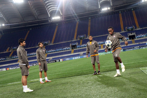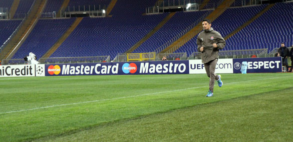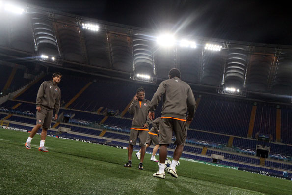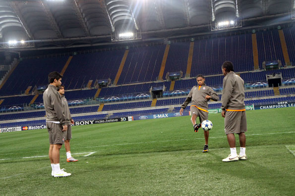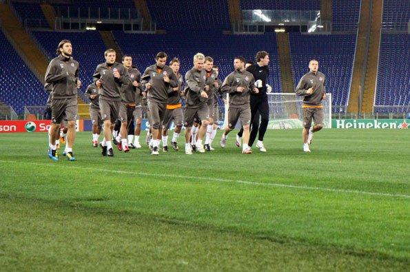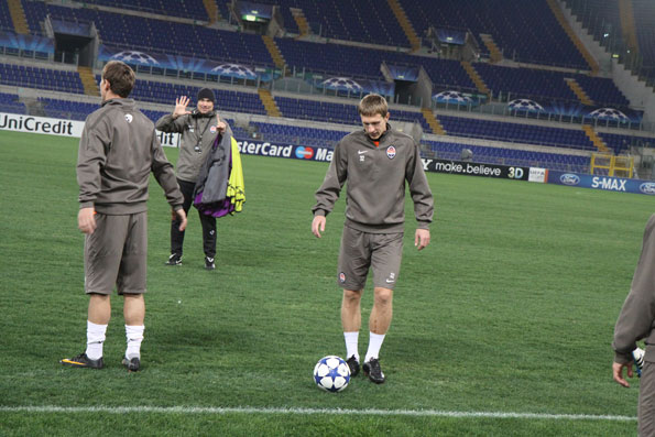 «Шахтер» по Регламенту УЕФА открыл 15 минут своей тренировки на «Стадио Олимпико». Ожидая появления Мирчи Луческу, бразильцы «Шахтера» вместе с боливийцем Марсело Морено резвились с мячиком.