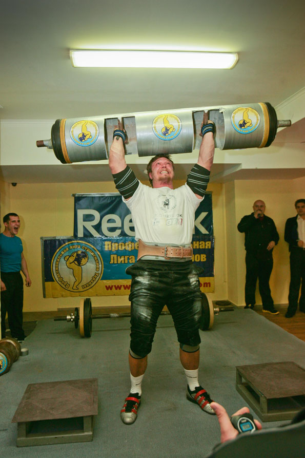 Вправа «Лог-ліфт» («Колода»), вага 145 кг – підняття колоди по повній амплітуді над головою на максимальну кількість повторень. АТЛЕТ – Сергій Конюшок
