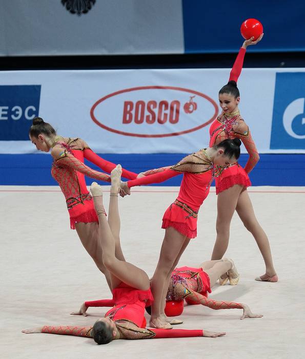Наш квинтет стартовал в данном разделе первым. Девушки выступили достаточно ровно, лишь в начале композиции допустив видимую глазу неискушенного болельщика ошибку – одну ленту не удалось поймать. В итоге – 23,05, что было намного лучше, чем днем ранее в рамках Кубка Газпрома – 19,95. Вторыми свой номер продемонстрировали финские спортсменки, которые показали худший результат дня. Команда Узбекистана тоже не сумела обойти украинок. Зато это сделали японки – 23,375. Затем прогнозировано сливки сняли россиянки. Осталась лишь сборная Азербайджана. Учитывая не очень большую любовь Фемиды к Украине на этом турнире, лишь явные ошибки соперниц могли вывести наших на «бронзовое» место. Так и произошло. Азербайджанки совершили две потери ленты подряд (один раз предмет вылетел за ковер) и получили за это устаивающую нас оценку – 22,700.