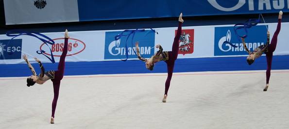 Слава Богу, не остались наши девушки без места на подиуме. В последний день московского турнира в групповых упражнениях с обручами и лентами украинки заняли третье место.