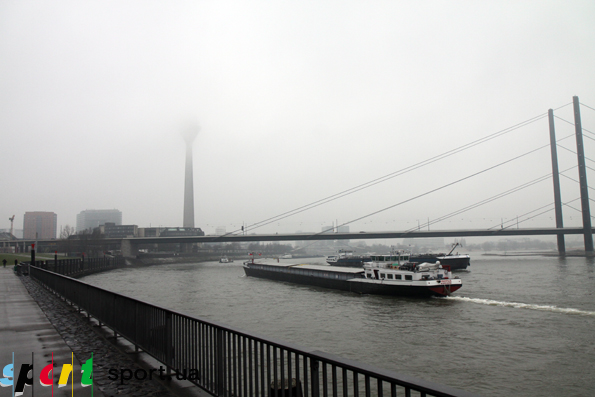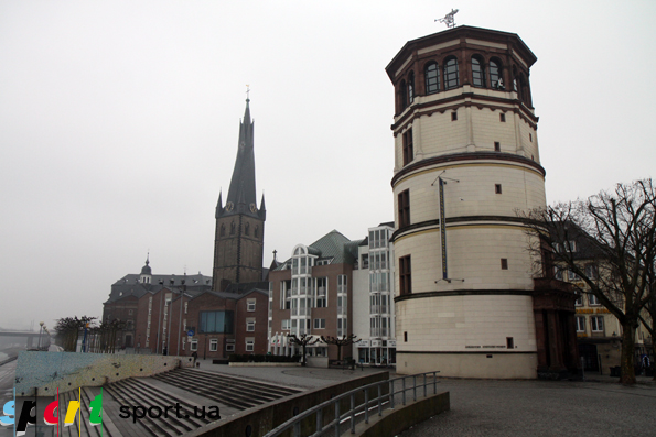 К огромному сожалению, в день матча, как уже писалось выше, стояла мерзкая погода, из-за которой толком ничего не удалось не только пофоткать, но и посмотреть. ТВ-башня, стоящая на берегу Рейна, впечатлила как снаружи, так и внутри, пусть даже при практически нулевой видимости из-за тумана. 180 метров высоты – круто! По рассказам очевидцев, бывавших там при более комфортной погоде, из окон вышки открывается вид на весь город.