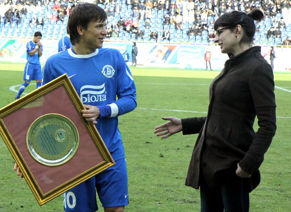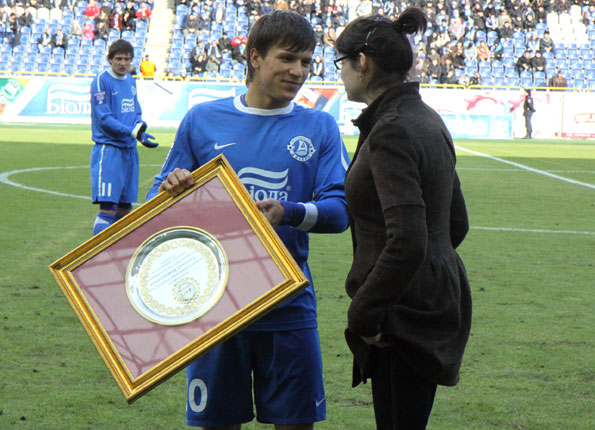 Сегодня, перед матчем 20-го тура чемпионата Украины «Днепр» - «Таврия», редакторы Sport.ua Татьяна Ящук и Антон Светличный вручили полузащитнику команды Хуанде Рамоса Евгению Коноплянке диплом Лучшего молодого игрока 2010.