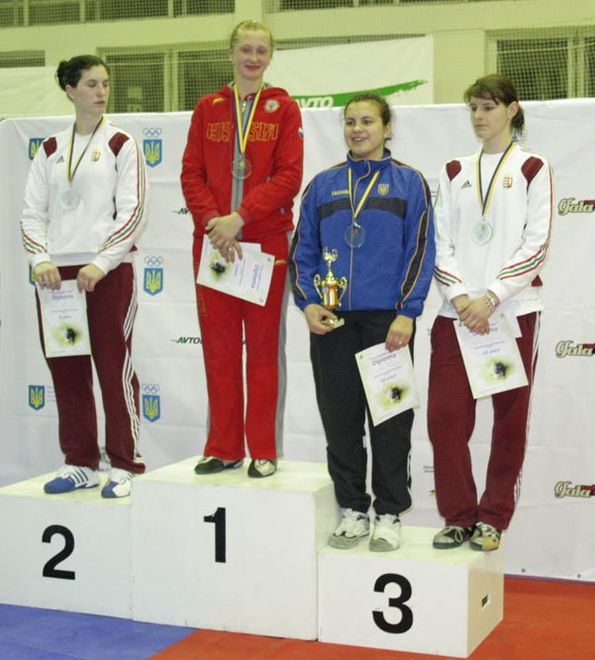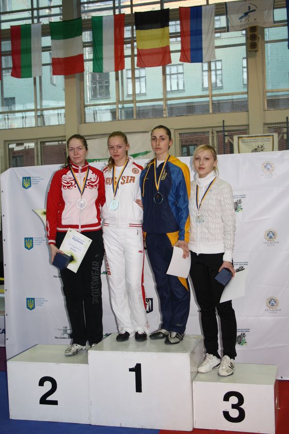 Шпага. Призеры соревнований - слева направо: Эдина Бекефи - второе место, Татьяна Гудкова - первое место, Анастасия Ивченко и Дорина Будай - обе третье место