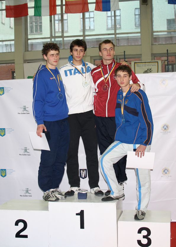 Победителем в соревнованиях среди юношей с саблей стал итальянец Рикардо Нуччио, который в финале одолел сильного соперника – украинца Евгения Стаценко. Третье место поделили брат Евгения – Алексей (жребий свел их в полуфинале) и россиянин Трофим Великий.