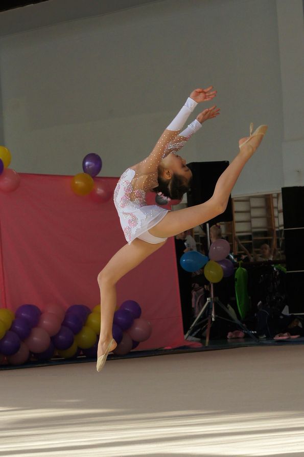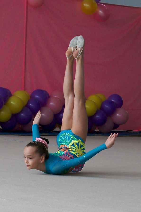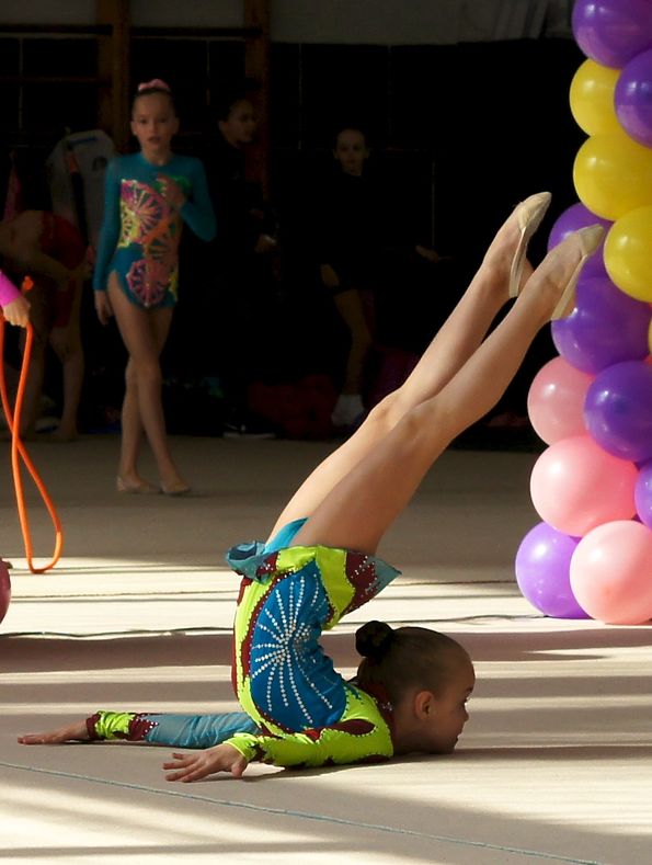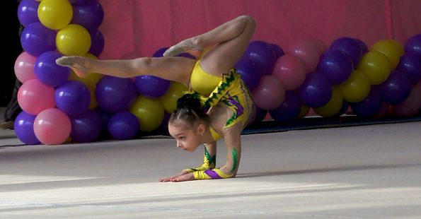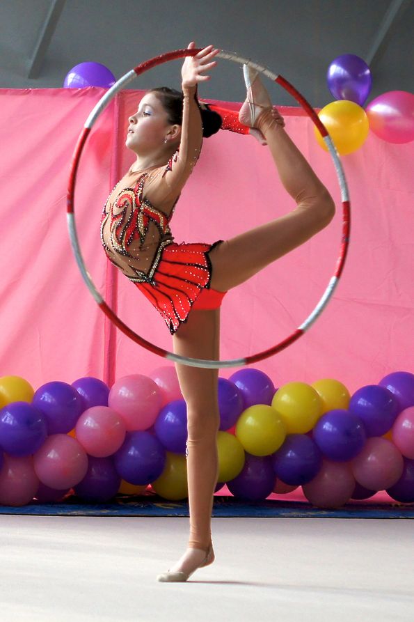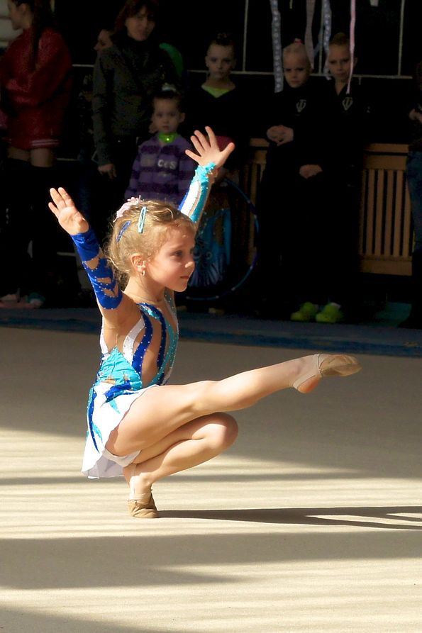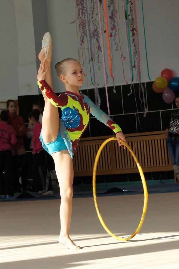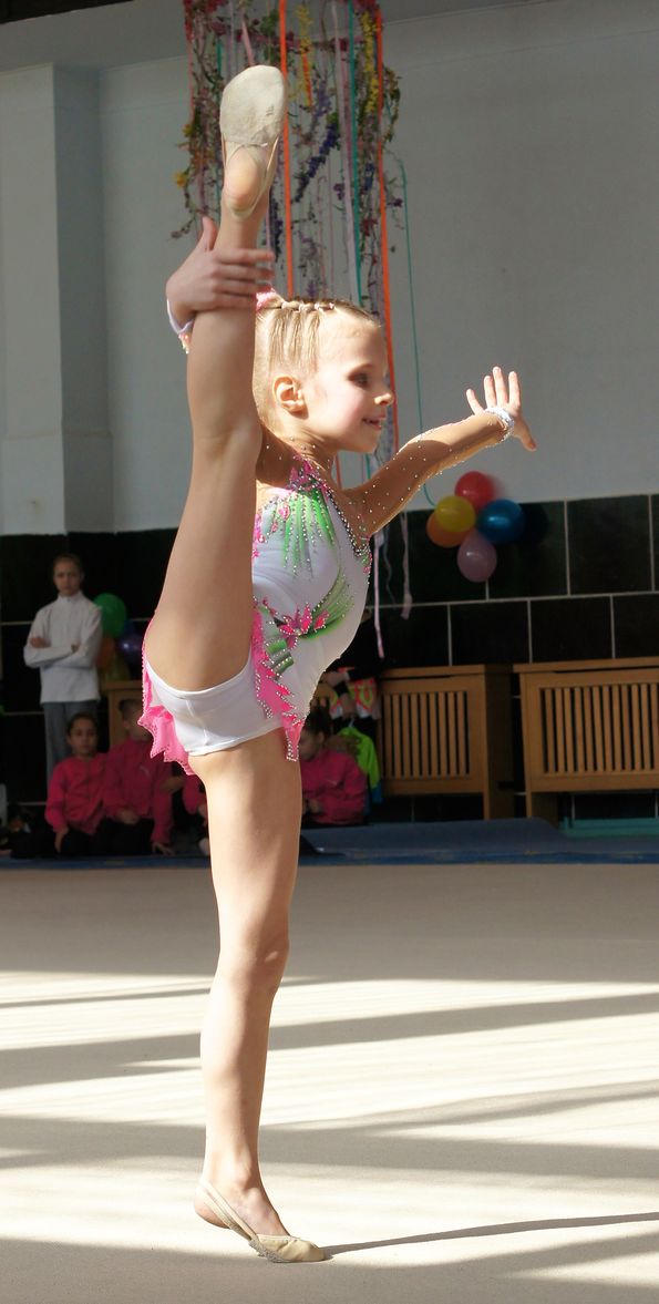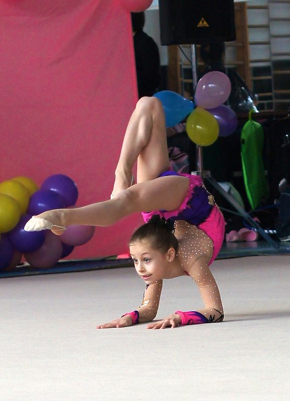 Юным спортсменкам, конечно же, гораздо проще танцевать под веселую, задорную музыку. И тренеры стараются ставить для них композиции в мажорной тональности. Но даже среди девочек 8-9-ти лет было несколько гимнасток, сумевших передать «взрослые» оттенки настроения. К примеру, выступление Дарины Костиной из клуба «Гармония-Элит» сразу же навеяло воспоминание о замечательной гимнастке еще советских времен Оксане Костиной. И дело не только в фамилии. 9-летней Дарине уже сейчас удаются упражнения в лирическом стиле, а именно лирика в свое время была «коньком» Оксаны Костиной… А еще Дарина – настоящий боец. В одном из упражнений она неожиданно потеряла.., нет, не предмет, а чешку, слетевшую с ноги. Но не растерялась, прекрасно довела программу до конца. И абсолютно справедливо стала победительницей в своей категории.