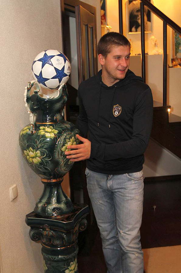 — Да и дом расположен удачно, — говорит Ярослав. — Тихий район, рядом — магазины. При этом — 5 минут езды до стадиона и 20 — до базы. На новоселье нам подарили вот эту вазу в форме Кубка чемпионов. Сказали: «Пока не завоюешь настоящий, пусть постоит керамический».