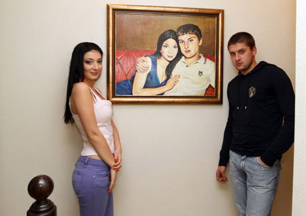 — Картину, которую нам подарил на свадьбу Виталик Виценец, он был у нас свидетелем. Рисовали ее с нашей самой первой совместной фотографии, сделанной, когда мы только начали встречаться.