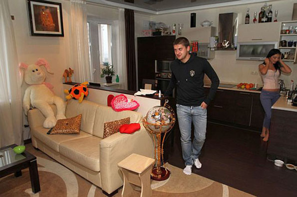 По всей квартире расставлены мягкие игрушки. Вот верблюд («Привезли из ОАЭ»), вот смешной оранжево-черный мяч с ручками и ножками («Подарок болельщиков, только у него один глаз где-то затерялся, так что зовем его Циклопом»). Но особо выделяются огромный белый медведь в спальне и такого же цвета заяц в гостиной. «Это подарок Ярослава мне на Новый год, — поглаживает ушастого Ольга. — Я ведь Заяц по восточному календарю».