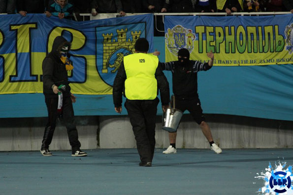 В тот же момент парень сверху сказал: «Ребята, успокойтесь, давайте болеть за сборную Украины». И в этот момент он тут же получил сильный удар по лицу, и шайка вместе продолжила его избивать. Потом на сектор наконец-то спустился стюард, который хотел вывести человека, который практически уже был без сознания, но в этот момент все внимание было переключено на него и эти «позорные волки» повалив его, начали срывать с него одежду и наносить хлесткие удары по всем частям тела. В этот момент подбежало два его напарника, и, вытянув его с толпы, быстро убежали за пределы трибуны.