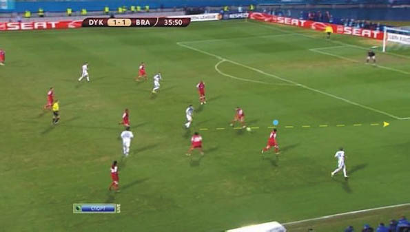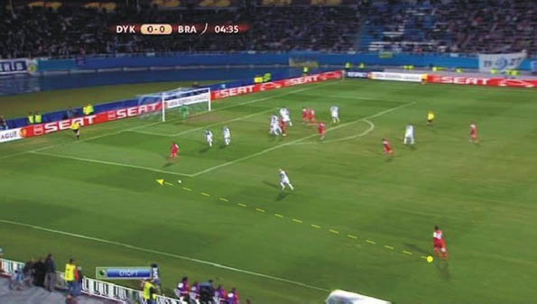В общем, начало матча показало, ДК действует правильно. Разве что подключения к атакам Попова и Данило были скованы активными действиями визави соперника. Преимущество ДК в атаке и, в частности, на втором этаже было обозначено голом и несколькими моментами, когда «Брагу» просто выручил вратарь Артур.