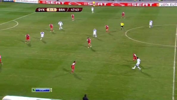 Пасьенсия ответил на появление Шевченко укрепив центр поля. С выходом Куштодиу «Брага» практически перестроилась на 4-4-2.