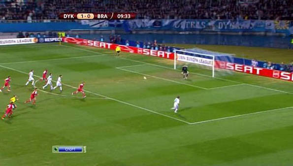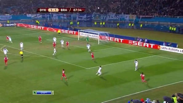«Брага» строила свою оборону на дисциплинированной игре в линию, стараясь подловить убегающих в прорыв динамовцев в офф-сайдную ловушку, чем поначалу заставили немало понервничать и самих себя, и своего вратаря.
