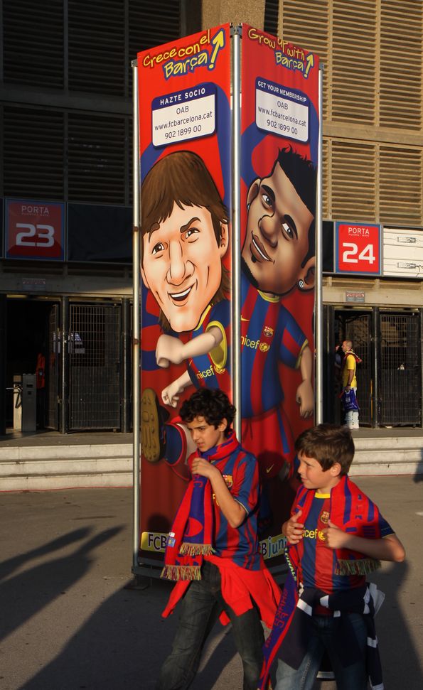 Барселона боготворит свою команду, город просто пропитан симпатией к сине-гранатовым. Признаки этого везде: клубные флаги на улицах, футболки и шарфы на прохожих, продажа сувениров с символикой в магазинах, супермаркетах, отдельные полочки с этими товарами в гостиницах и кафе. Есть даже специальный клубный канал - Barca TV, который, правда, вещает не только о футболе, но и о других видах спорта, которые культивирует спортивный клуб «Барселона».