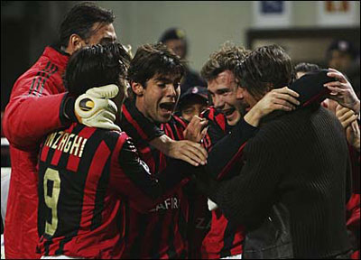 После этого последовало очередное миланское дерби (одно из лучших в истории противостояния этих команд). В этой встрече «Милан» продемонстрировал настоящий характер и боевой дух, сумев совершить камбэк, проигрывая после первого тайма со счетом 0:2. Но во второй половине встречи все стало на свои места благодаря голам молодого бразильца Кака, который проводил один из лучших сезонов в «Милане», редко появляющегося в составе Томассона, и «вечно молодого» Зеедорфа. Эта победа практически не оставляла шансов «джаллоросси» на победу в чемпионате, ведь отрыв составлял уже 8 очков и календарь у подопечных Карло Анчелотти был получше.Весна. Решающий и определяющий остаток сезона «Милану» надо было провести на самом высоком уровне, дабы не растранжирить весомое преимущество над «Ромой». А могло быть и такое. Особенно после фиаско в Лиге чемпионов.